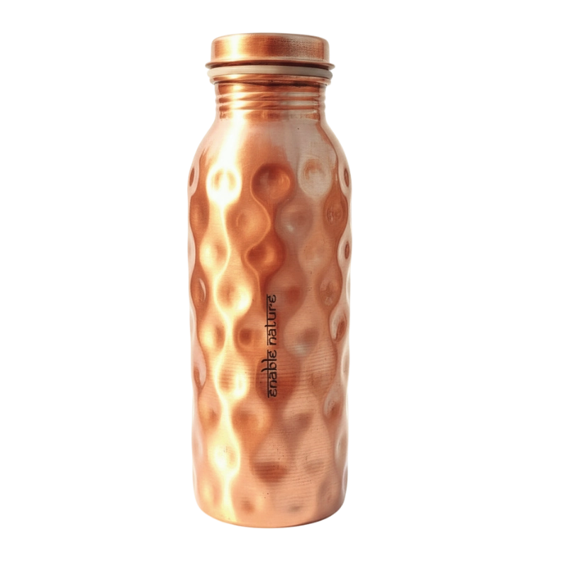 Kobberflaske fra Enable Nature, bestående af ren kobber. Kan indeholde 650ml vand. Det anbefales at bruge kobberflasken udelukkende til rent drikkevand.