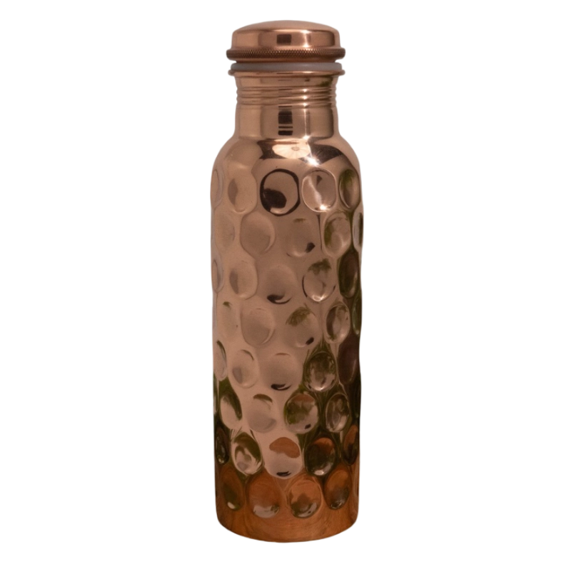 Kobberflaske fra Ayurveda Specialist, bestående af ren kobber. Kan indeholde 750ml vand. Det anbefales at bruge kobberflasken udelukkende til rent drikkevand.